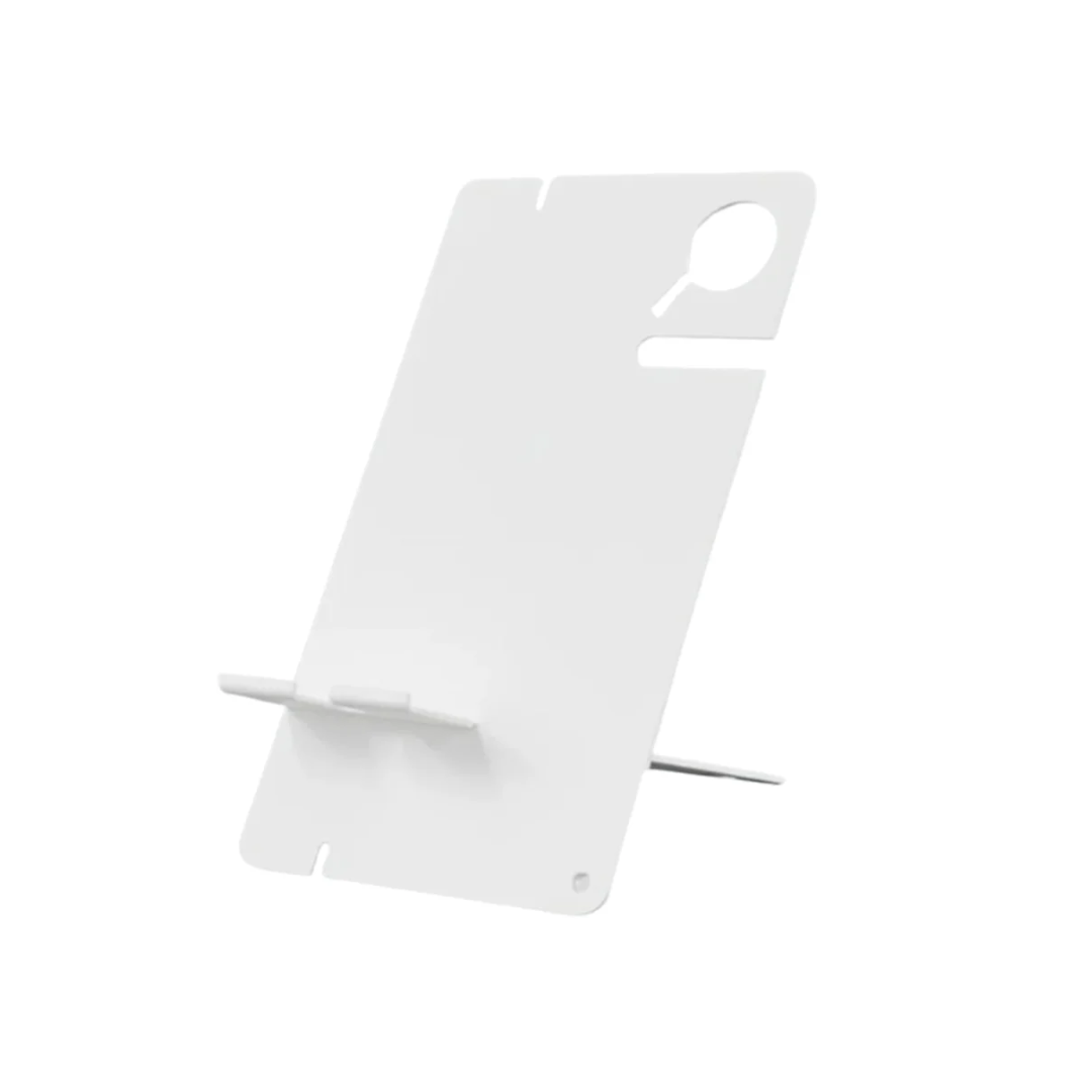 Compacto e moderno, ideal para manter seus dispositivos sempre organizados e ao alcance. Fabricado em aço com pintura Epóxi, oferece resistência e um design minimalista que combina com qualquer ambiente. Possui apoio inclinado para o celular, permitindo usar o aparelho enquanto carrega, e espaço lateral exclusivo para acomodar o relógio de pulso ou smartwatch com segurança. Prático e elegante, é perfeito para mesas de escritório, criados-mudos ou bancadas.