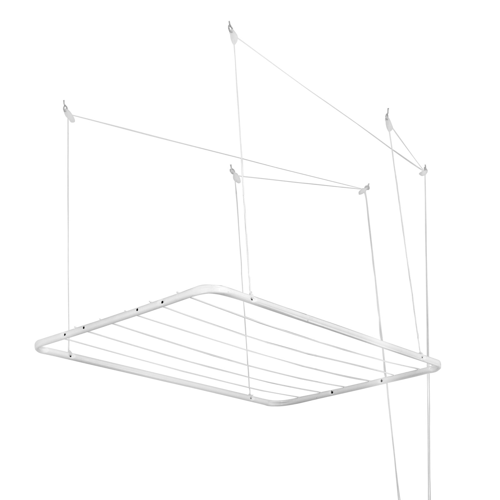 Varal de Teto Maxeb branco combina praticidade e leveza visual, sendo perfeito para ambientes claros e compactos. Possui sistema de cordas que facilita o ajuste de altura, tornando o processo de secagem mais acessível e eficiente. Com 6 varetas e fixação no teto, proporciona excelente aproveitamento de espaço, mantendo o ambiente organizado e funcional. Suportando até 13kg e 5,4 metros para estender roupas. O acabamento branco oferece discrição e harmonia com diversos estilos de decoração.